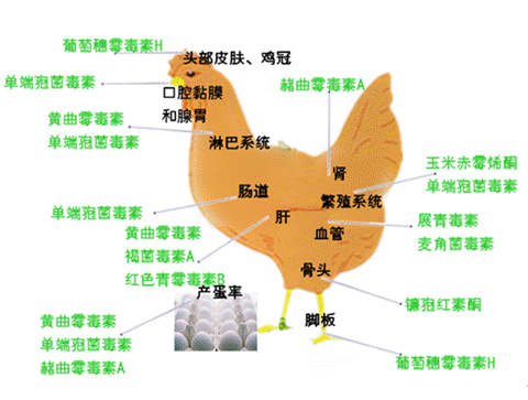 霉菌毒素對器官的損傷示意圖