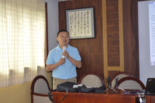 隨后公司技術(shù)研發(fā)總監(jiān)王金紀(jì)先生做了具有指導(dǎo)性意義報(bào)告,王總對(duì)當(dāng)前國(guó)家對(duì)獸藥企業(yè)的研發(fā)生產(chǎn)法規(guī)、獸藥研發(fā)形勢(shì)、行業(yè)發(fā)展現(xiàn)狀、公司現(xiàn)有產(chǎn)品情況給予了詳細(xì)說明。