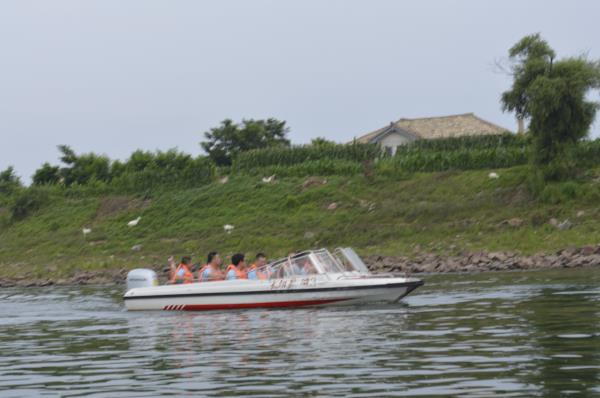 第一天上午隨后我們來到了太陽島景區(qū),大家乘坐游艇游覽了朝鮮境內(nèi),這次朝鮮之旅感慨很多,朝鮮對于我們來說是那么的神秘、那么的深不可測。帶著眾多的猜測和好奇我們進入了朝鮮的境內(nèi)看到朝鮮的軍人、別墅、河邊洗衣的鮮族人、不平等的男女關系、110伏的電線、瘦弱的山羊、如今人們還是吃不飽穿不好。
