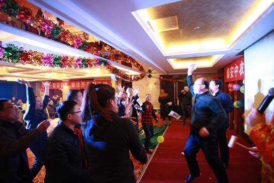 臺(tái)下一桌桌豐盛的晚餐、彼此舉杯同賀、相互祝愿。公司領(lǐng)導(dǎo)與員工親情互動(dòng)、激動(dòng)人心的砸金蛋活動(dòng)、搶錢大賽、四大名陪吹瓶比賽、五環(huán)之歌對(duì)歌游戲。。。