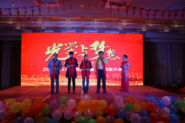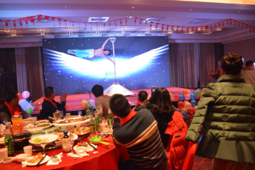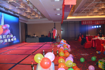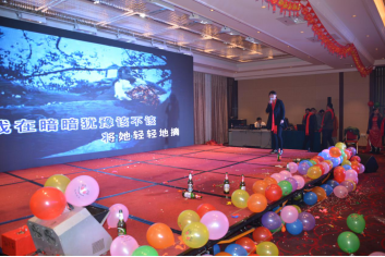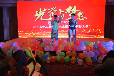 臺(tái)下一桌桌豐盛的晚餐、彼此舉杯同賀、相互祝愿。公司領(lǐng)導(dǎo)與員工親情互動(dòng)、激動(dòng)人心的砸金蛋活動(dòng)、搶錢大賽、吹瓶比賽......