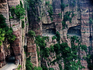 太行山由于地殼運(yùn)動形成了斷裂,幾乎是垂直而下,山谷往往是萬丈深淵。掛壁公路就是在這樣的絕壁上開鑿出來的。如今,就算是走在掛壁公路上,看看腳下不見底的深谷,都會不寒而栗,難以想象當(dāng)初郭亮村的村民是以何等的勇氣開鑿出了這樣一條人間奇跡!