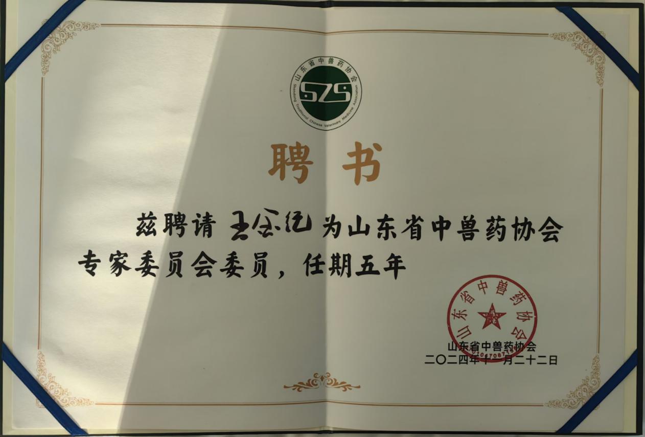 本次會議還選舉產(chǎn)生了會長、副會長等多家單位,并確定了秘書長、監(jiān)事長等人選,我公司技術(shù)總監(jiān)王金紀被聘請為山東省中獸藥協(xié)會專家委員會委員。